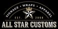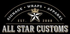 All-Star Customs is a print shop specializing in vehicle wraps, banners, business signage, safety signage, logo creation, vehicle decals, banners, interior wall wraps, tee shirts, koozies, and promotional products. We pride ourselves on designing, printing, and installing a product that our customers are thrilled with.